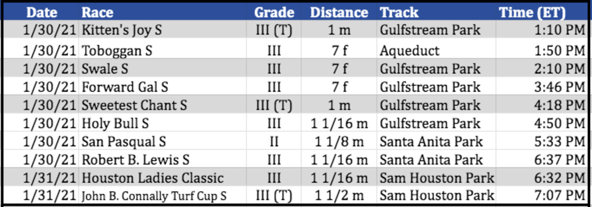 Saturday, Jan. 30 – Post Time 4:50 PM E.T.