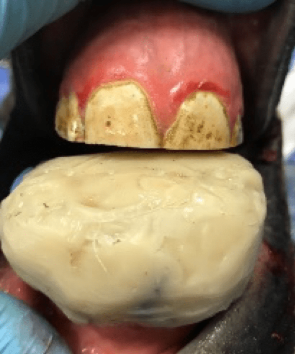 DR. BRAD TANNER: Horses come in all shapes and sizes and so do their mouths. A parrot mouth describes the upper lip that hangs forward and down ahead of the lower lip. This term is synonymous with overbite malocclusion of the incisors of a horse. As the top jaw grows, if it grows at a faster rate than the lower jaw, the front teeth will be extended forward and no longer make contact with the lower incisors. This is what gives the characteristic large, goofy lip of the top jaw that we so often call “parrot mouth.” When an owner raises the top and lower lips, you will notice that those front teeth often times barely contact or sometimes don't contact at all.