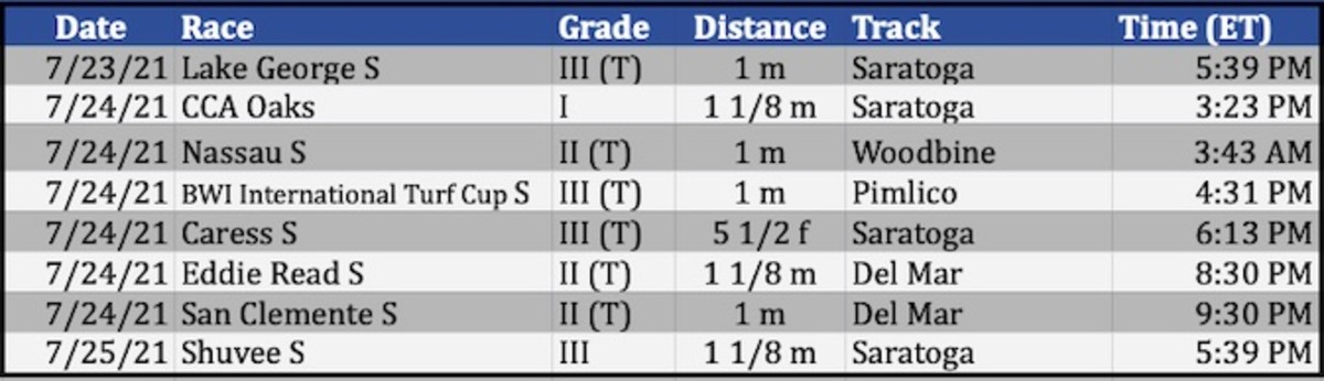 Here's a quick snapshot of this weekend's graded stakes schedule (all times Eastern):